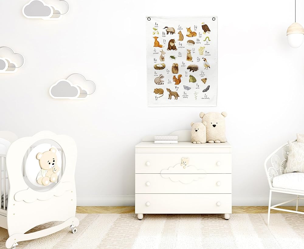 Discover the perfect touch with our woodland alphabet banner. Ideal as baby boy room decor, this piece elevates any nursery wall décor. Mingle enchantment and learning with our baby wall decor, making it a precious baby decor for nursery.