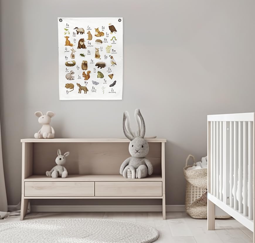 عزز مساحة طفلك من خلال لافتة الحروف الأبجدية لحضانة وودلاند! مثالية كديكور حائط لغرف الأطفال للأولاد، تعرض هذه اللافتة موضوعات ديكور حضانة الغابات الساحرة. استمتع بالديكور التفصيلي لحيوانات الغابة الذي يثقف ويأسر.