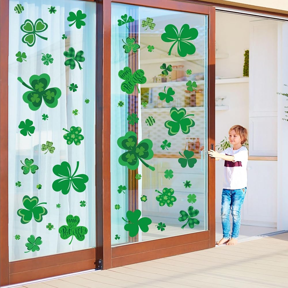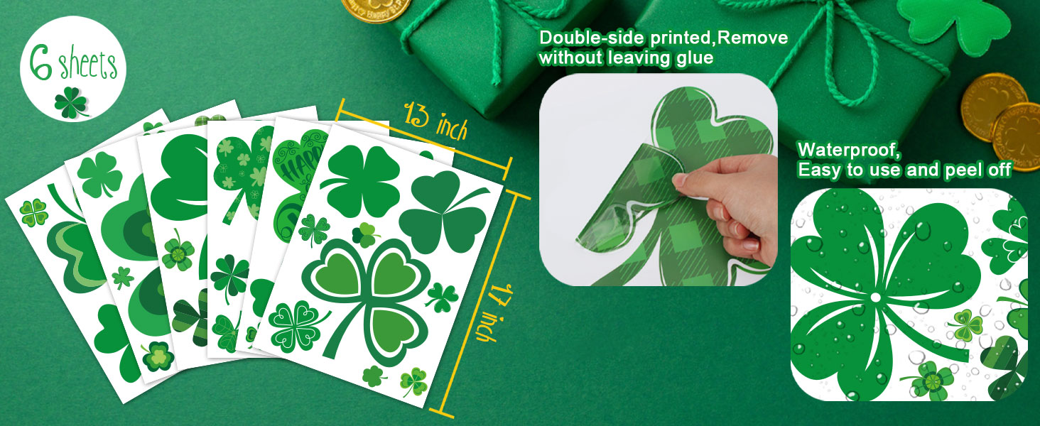Reusable Window Clings: These St Patricks Day window clings for glass windows are made without glue,follow the instruction step by step,spray a little water on the window surface before stick, wipe off the extra water after finish.Easy to use and peel off, which leaves no residue and reusable.