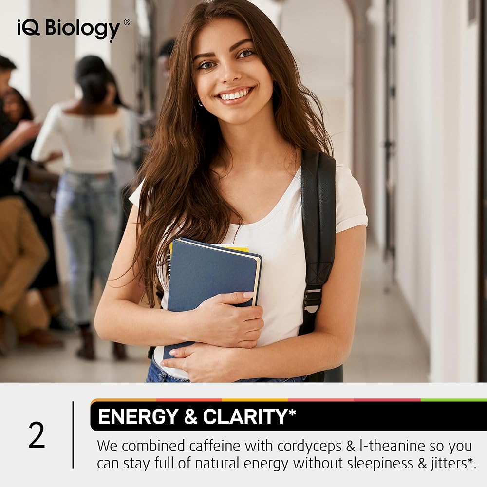 Cognitive Supplement with Naturetropic Blend - IQ Biology's Naturetropic Blend is what makes our memory supplement for brain and focus unique. The blend contains turmeric curcumin with black pepper, rhodiola rosea supplement, and panax ginseng extract for energy support, kava root extract and L Theanine for focus. Alongside caffeine pills, L Glutamine for brain support, MCT, beet root capsules, enoki mushrooms for overall wellness, and Inositol Capsules to round out your cognitive health.
