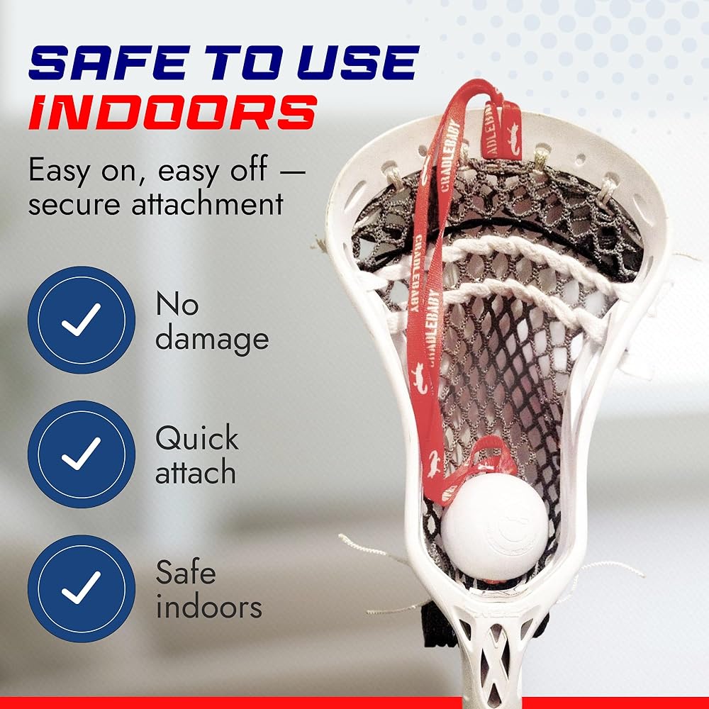 Simply the best way to get more repetitions: cradling, switches, dodges, jukes, fake shots, and fake passes. Cradlebaby increases training time and repetitions by allowing you to practice indoors or out, anytime. Lacrosse balls are heavy and have the tendency to damage breakable objects. Cradlebaby keeps the ball tethered to the stick, ensuring that the ball will not inadvertently go flying through the air. Lacrosse techniques can now be safely practiced indoors, so now you won't be limited by inclement weather or darkness.