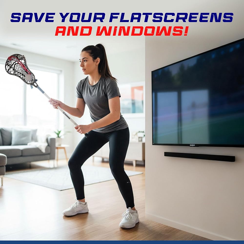 Practice lacrosse cradling, dodges and fakes indoors without damaging windows and lamps.