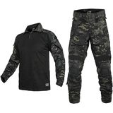 Upgrade elastic cloth, improved version. 5050 scratch-proof camouflage quality fabric. The knee is made of camouflage elastic fabric, and the kneecap is removable. Several large capacity tactics loading system, not only meet the daily commute, also guaranteed the load demand of large capacity: Left and right main pockets, thigh side pockets, trouser side pockets, invisible zipper tail pockets.