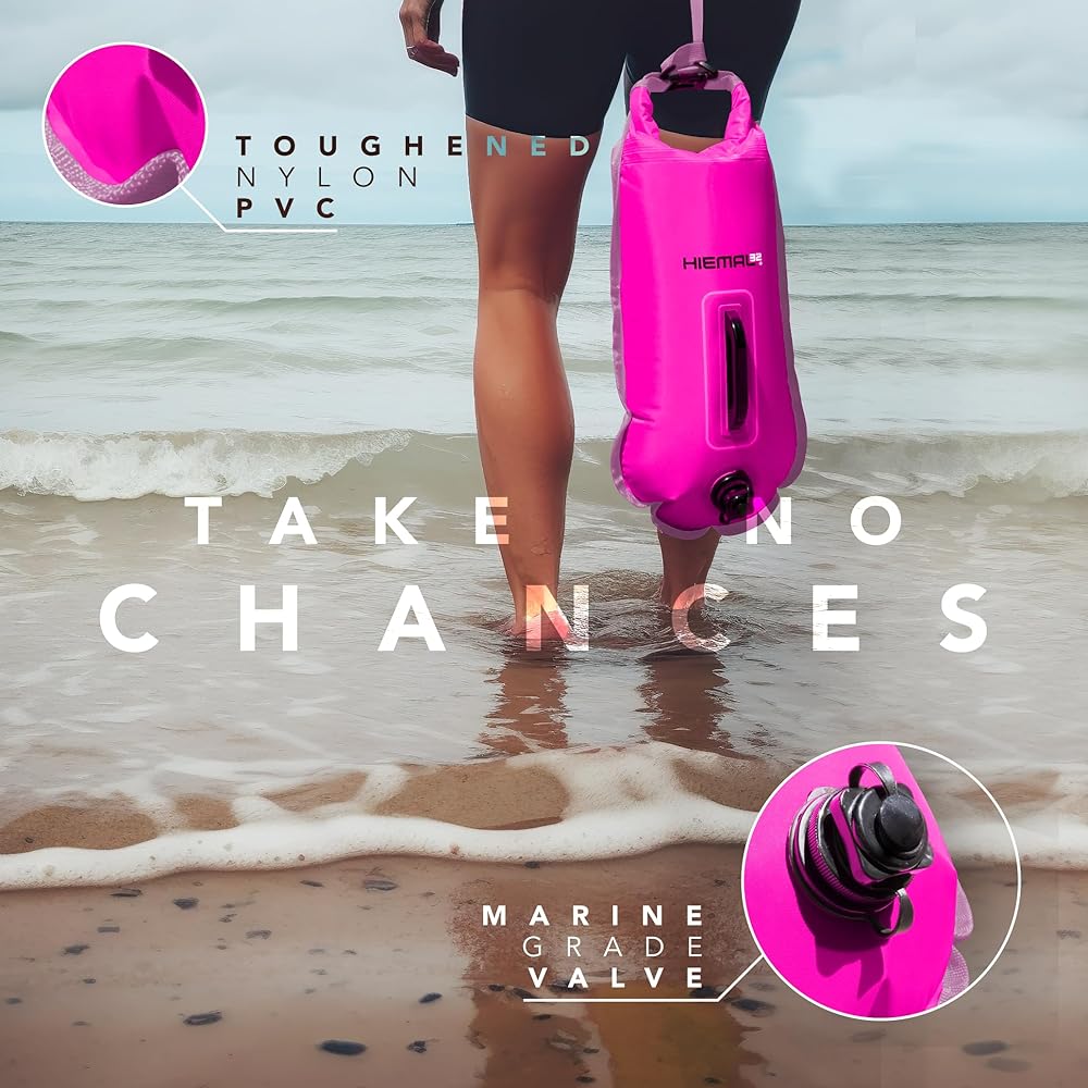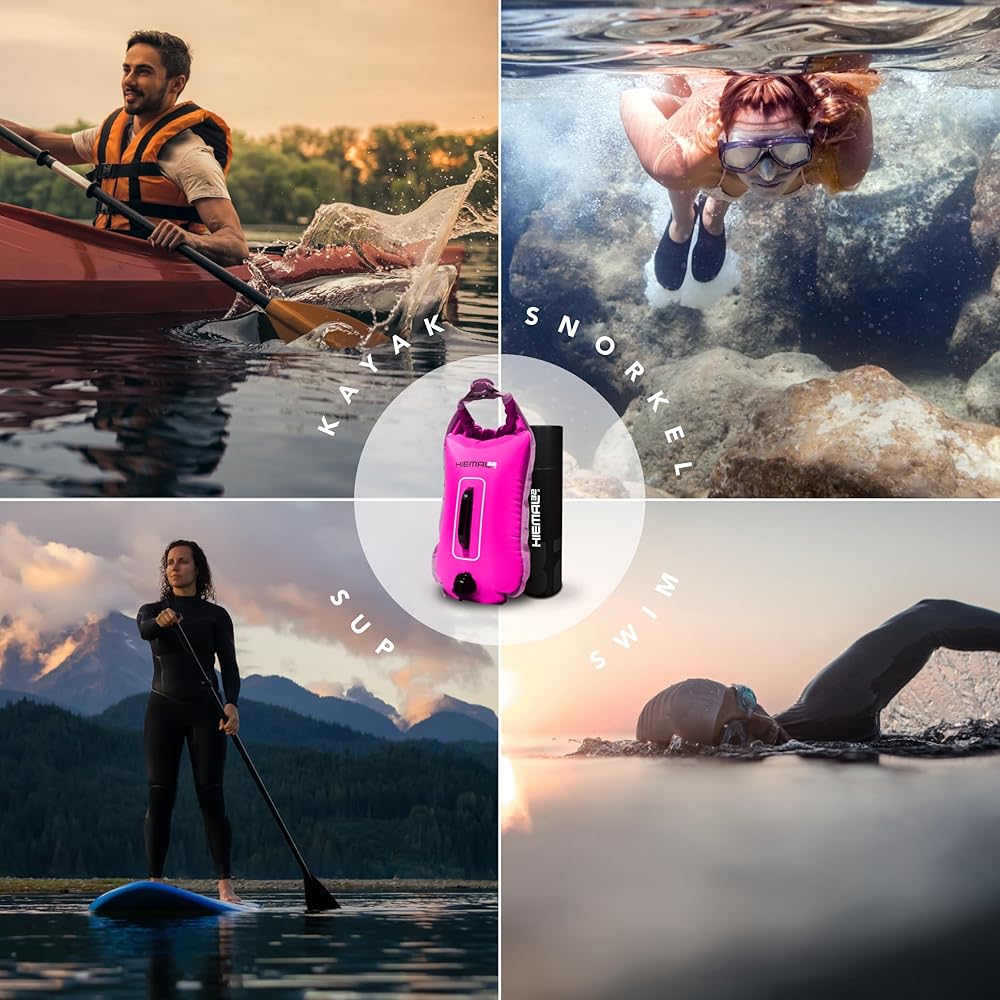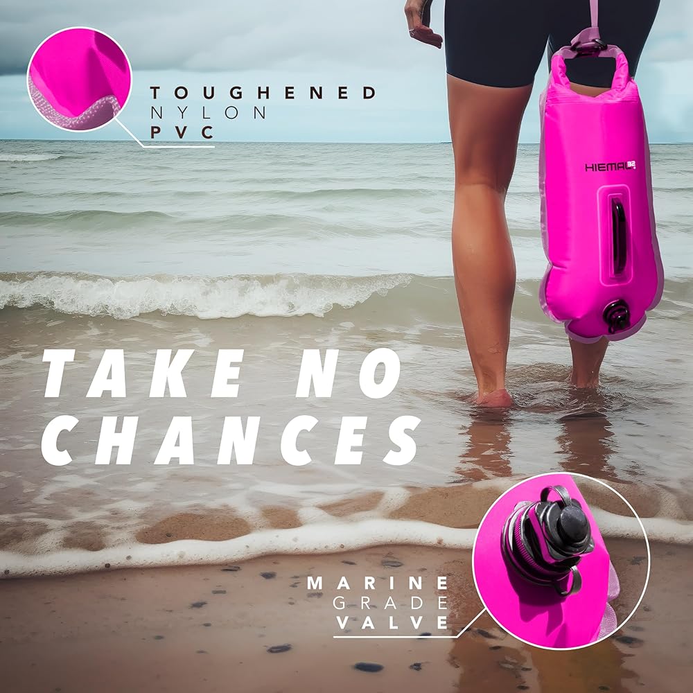 KEEP YOUR BELONGINGS DRY - Dry Bag Buoy with Improved Nylon PVC exterior armor prevents holes and leaks from occurring in the swimmers marker. Fully Waterproof interior lining means your belongings stay bone dry during your swim.