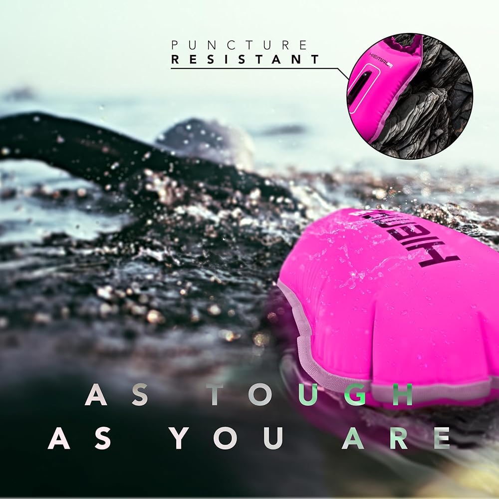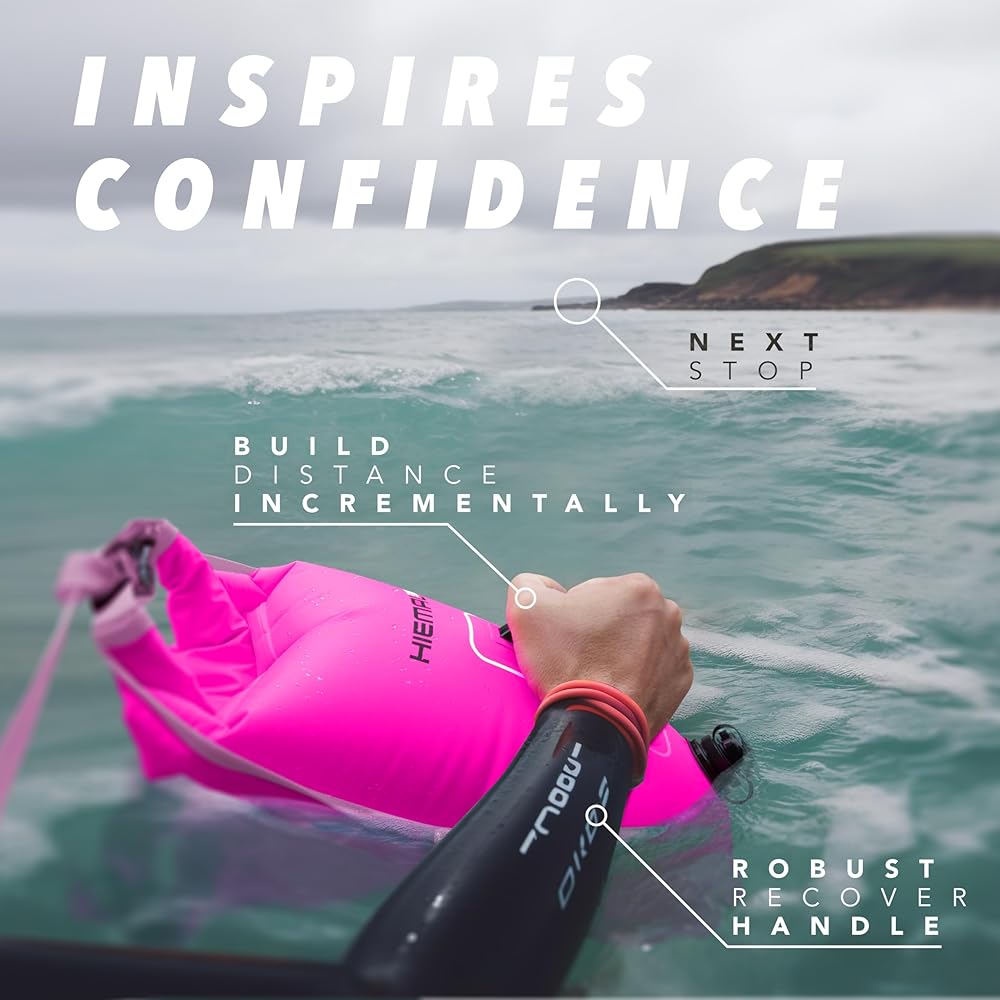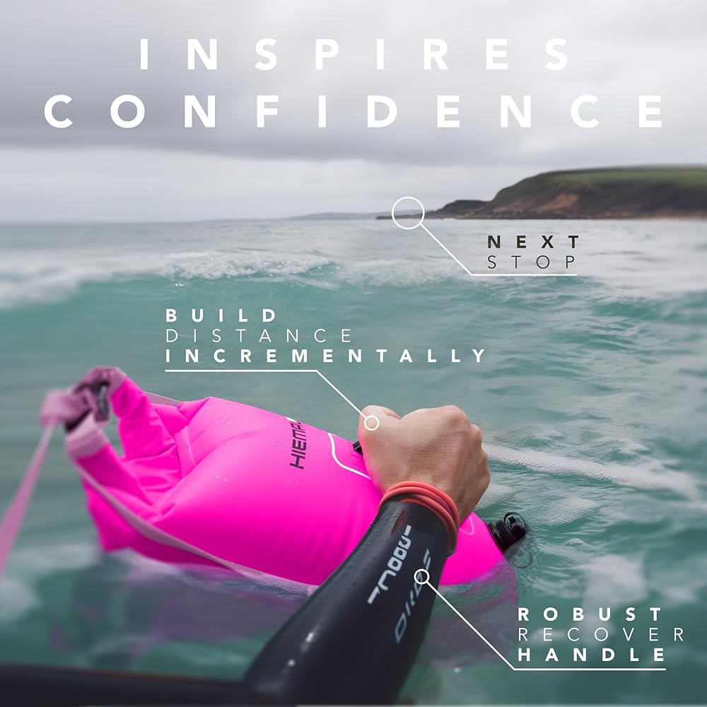 FEEL CONFIDENT IN THE OPEN WATER - Inflatable buoy measured buoyancy support up to 190lbs. Robust rest handle gives you the chance to pause and recover in the water. Marine quality dual direction valve ensures zero leaks, full buoyancy and easy inflation adjustment.