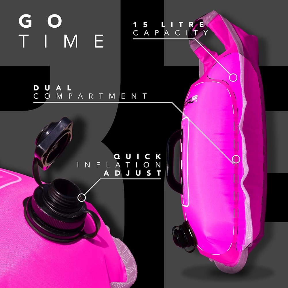 AMPLE SPACE FOR YOUR GEAR - 15L capacity makes the swim buoy dry bag large enough for your essential gear. Spare items of clothing, keys, phone, wallet all fit comfortably in your swim buddy, opening up the opportunity for one-way swims.