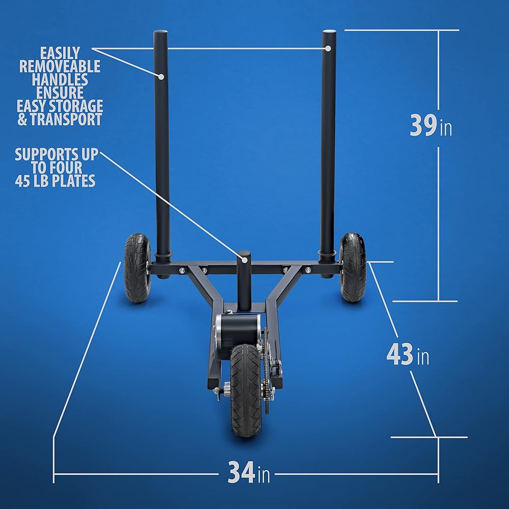 Our 3 Wheeled Push Sled with automatic resistance motor is the perfect lower body speed and power training tool. No to low plate weights are required, the resistance motor does all of the work making it difficult to push the push sled regardless of your strength level. Your home gym will not be complete without this.