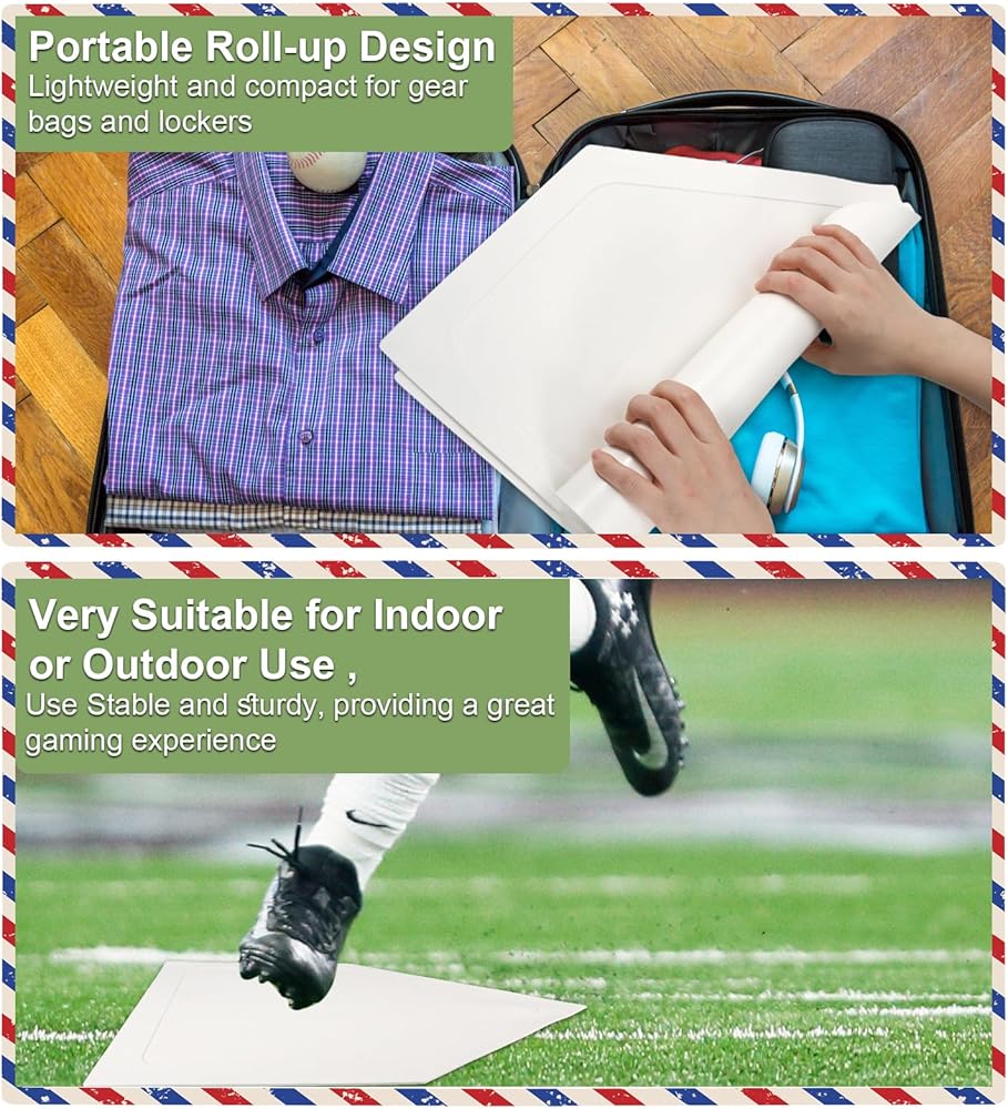 These rubber baseball bases measures approximately 16.2 X 15.8 inches and can be easily rolled up and placed in a car or gear bag. It can be carried anywhere you want, allowing you to play games or practice anytime, anywhere, making your baseball experience more enjoyable and convenient