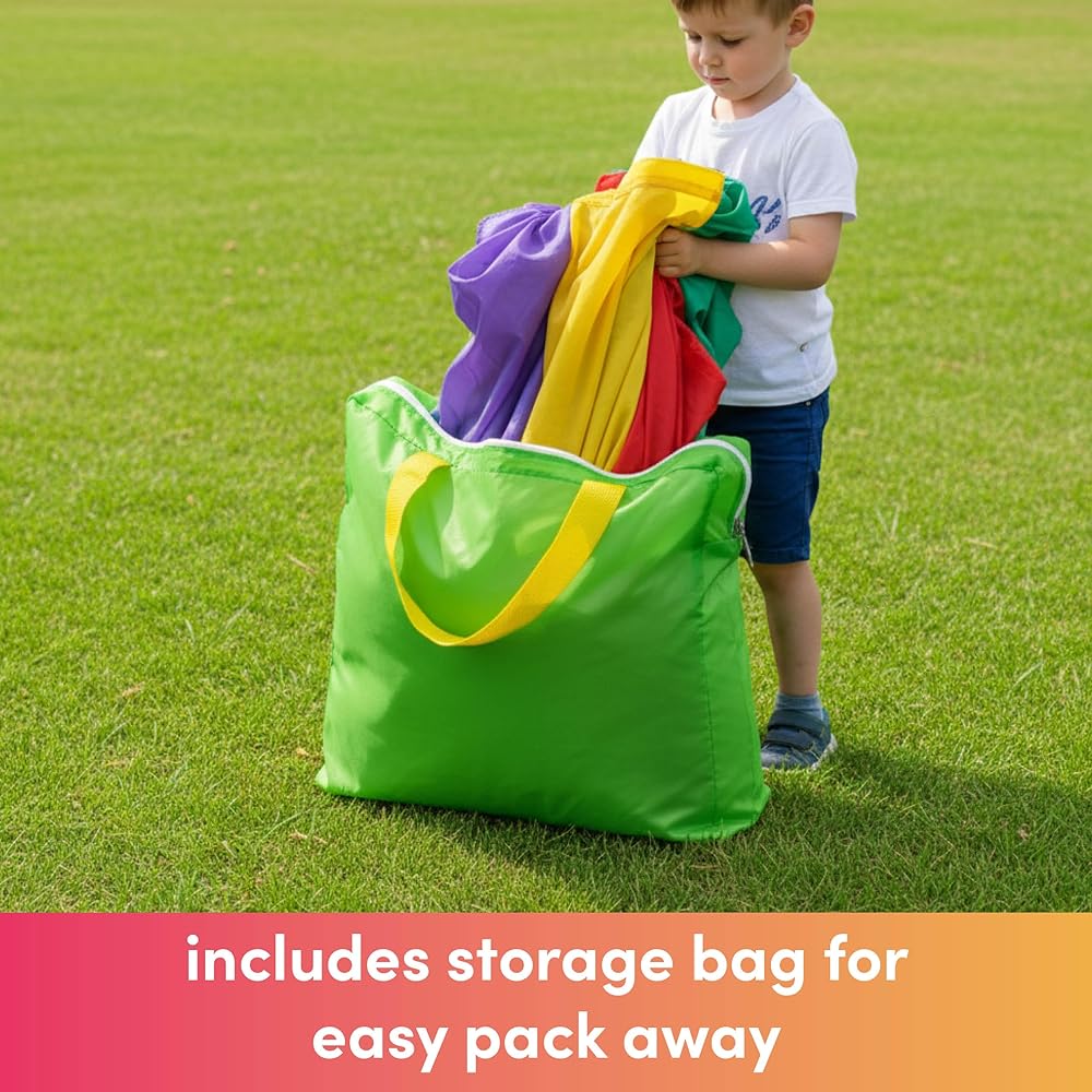🌈 VARIOUS USES - Our parachutes work well in a variety of settings, from playgroups and nurseries to drama classes and Mum & group meetings. They're suitable for groups of friends, play at home, outside in parks, or indoor parties, ensuring plenty of fun and laughter with parachute kids.