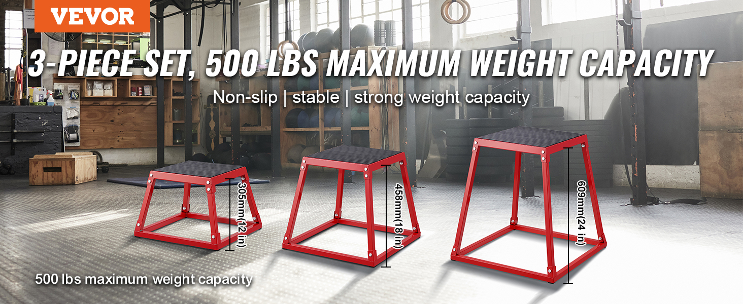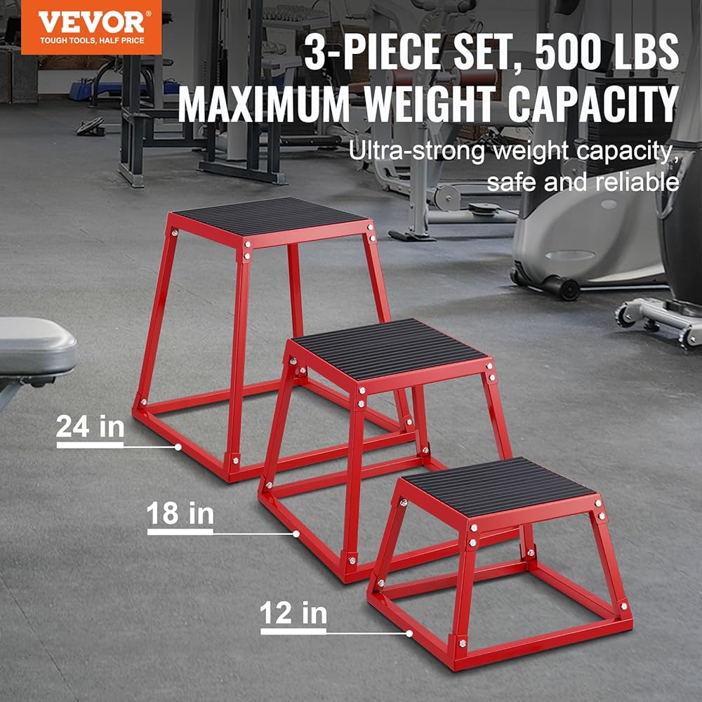 VEVOR Plyometric Jump Box, 18 Inch Plyo Box, Steel Plyometric Platform and Jumping Agility Box, Anti-Slip Fitness Exercise Step Up Box for Home Gym Training, Conditioning Strength Training
