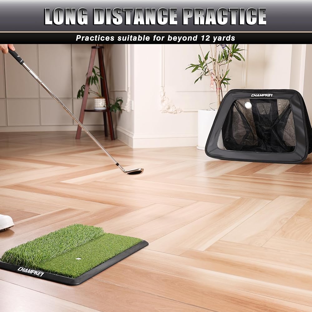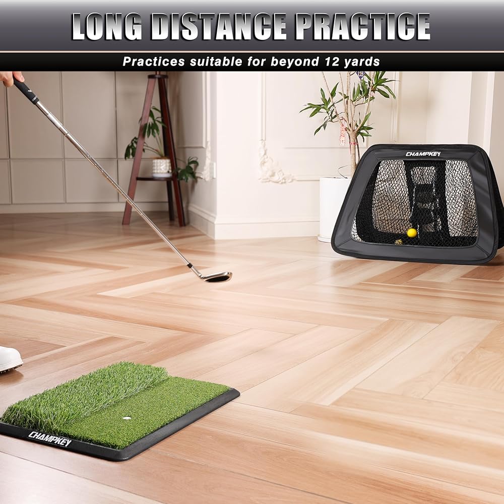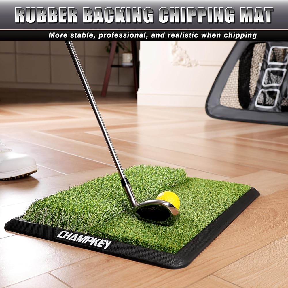 Rubber Backing Chipping Mat : Made of 16mm premium synthetic fairway turf and heavy duty rubber backing. Provides excellent grip and stability when training.