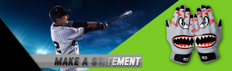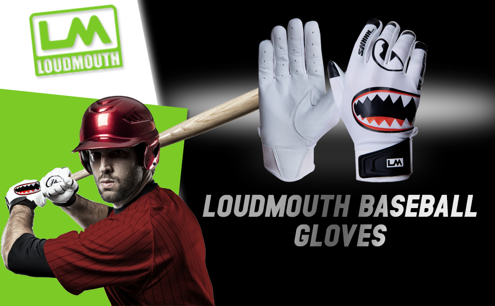 Loudmouth Baseball Batting Gloves - Adult & Youth Sizes | Genuine Pro Grade Leather Palm | Form Fitting Comfortable Spandex Fabric | Adjustable Neoprene Wristband | Adult & Youth Batting Gloves