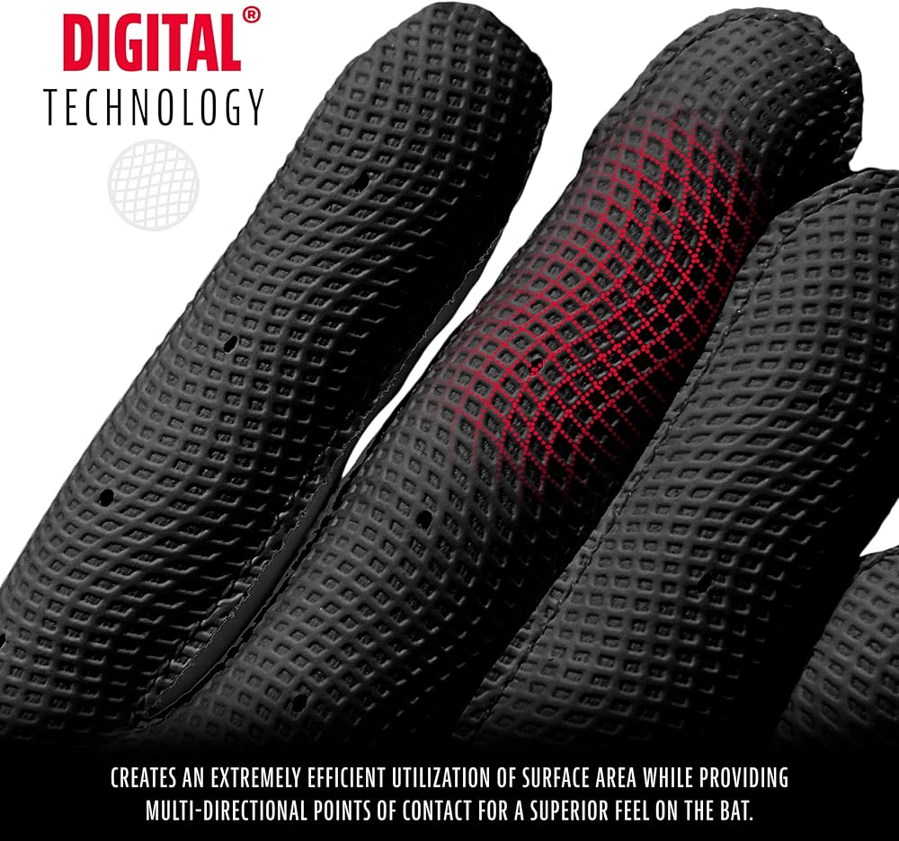 DIGITAL TECHNOLOGY: Creates an extremely efficient utilization of surface area while providing multi-directional points of contact for a superior feel on the bat