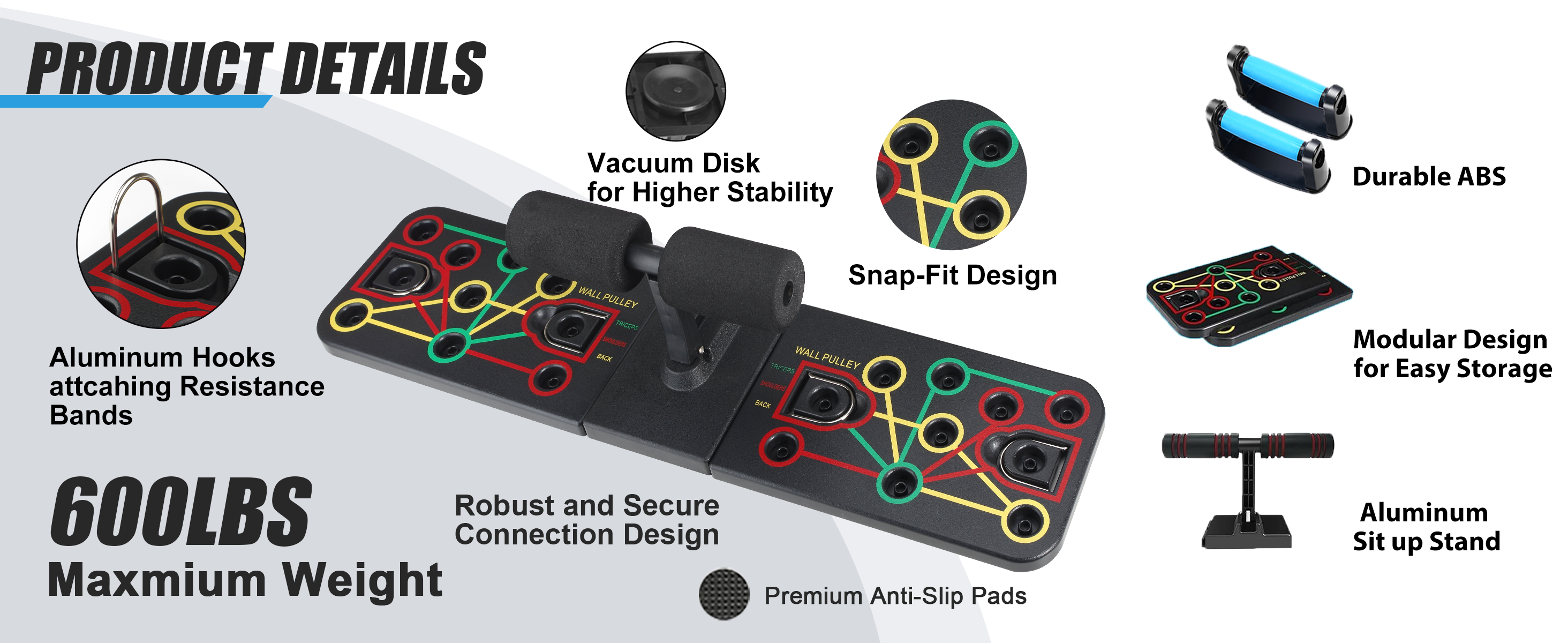 Easy to Use: The push up board with sit up function is easy to assemble and comes with clear instructions. The compact design allows for easy storage and transport, making it perfect for home use or taking to the gym.