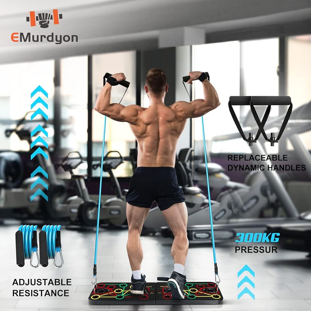 New Upgraded Portable Home Gym with Sit-up Stand, Push Up Board, Premium Resistance Bands, 35-in-1 Multifunctional Strength Training Equipment, Home Fitness for Men and Women