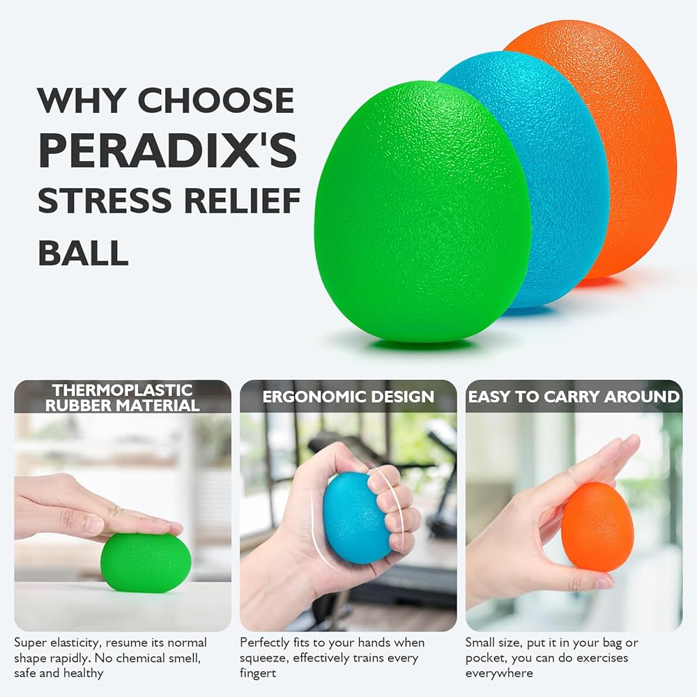 🥚GREAT GIFT - This set contains 3 different resistance(soft, medium and hard). Using different grade strength according to different people and purposes. The soft is better for children and the old to get finger and forearms strength. The medium is is perfect for the work man with all day work, it can maintain focus and concentration even relieve arthritic hands. The firmest is much suitable for people with certain muscles, like athlete.