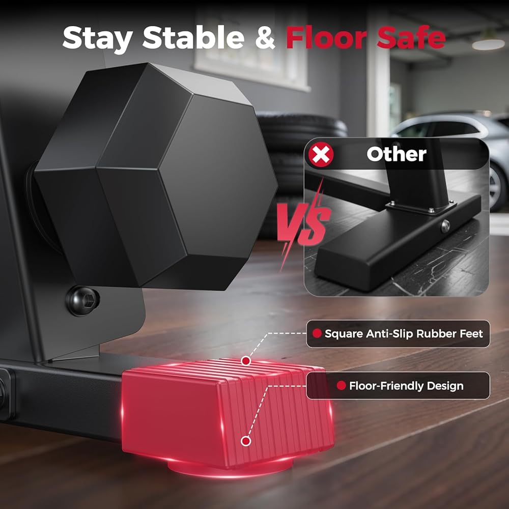 【4 Minutes to Install】With installation tools, the dumbbell stand is easy to install and can be set up in 4 minutes. Equipped with the rubber-covered feet to prevent floor scraping and the slotted rubber to prevent dumbbell damage.