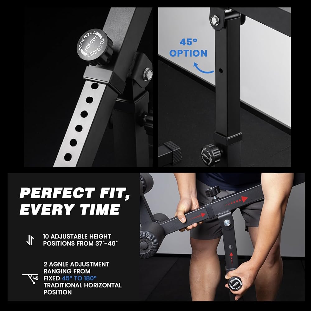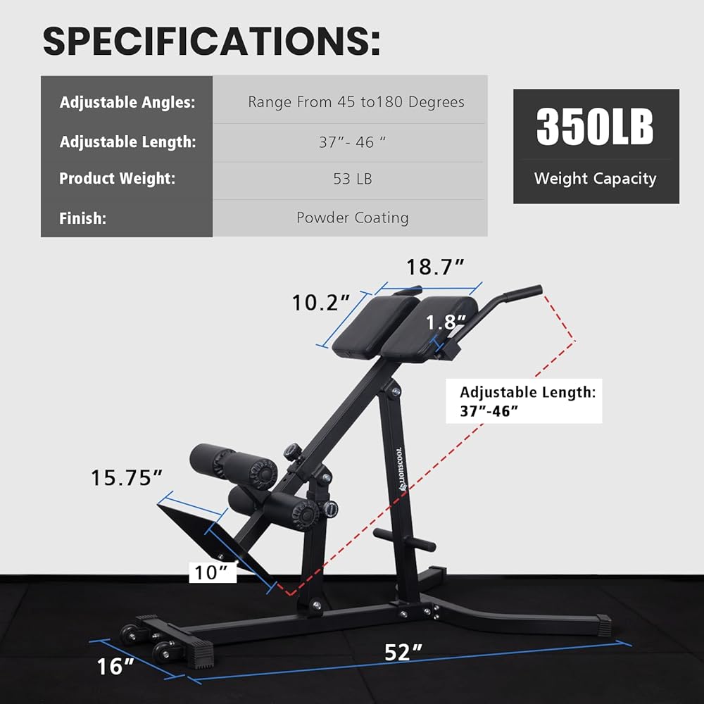 Tailored To All Your Needs: What sets our Roman Chair apart is its exceptional adjustability. With 5 angle adjustments ranging from 30°-60°, this hyper extension offers an unparalleled level of versatility, allowing you to target different areas in your lower back, glutes and hamstrings. Additionally, the roman chair features 7 adjustable height range ( 35" to 44") to accommodate varying user heights, making it your personalized fitness companion.