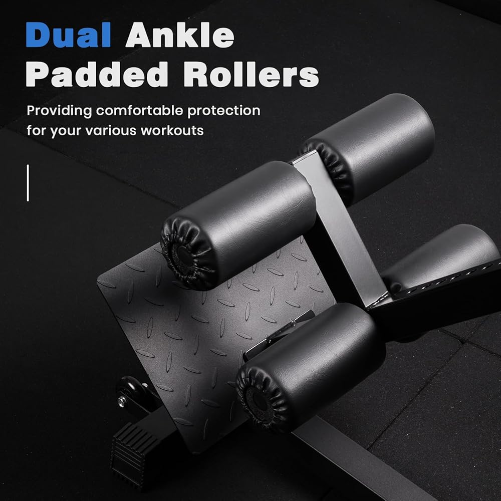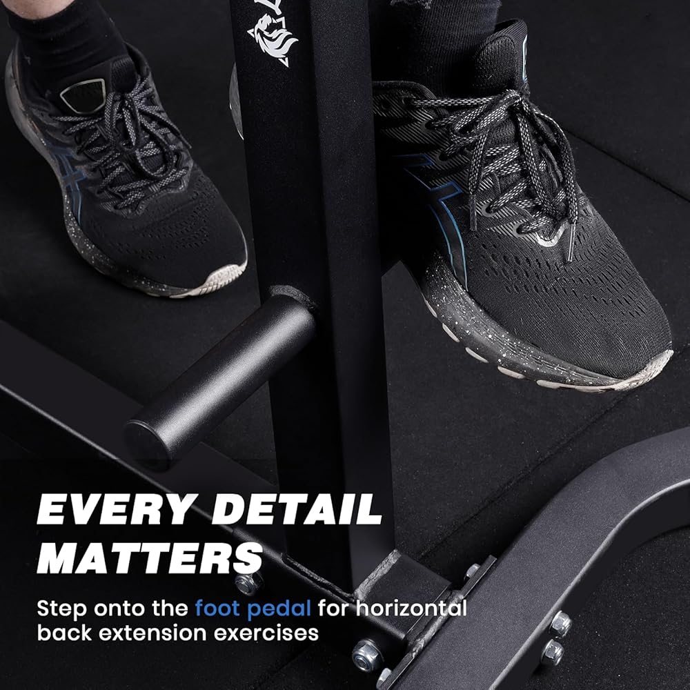 Unmatched Comfort: Elevate your workout experience with the unrivaled comfort of our Roman Chair. The extra wide cushions with thick and soft foam padding provide the support you need without compromising on comfort. The best part? These cushions are thoughtfully designed with an ergonomic angle, ensuring an optimal fit and comfort during your workouts. Our Roman Chair also features an anti-slip footplate that's wide enough, offering unwavering stability even during your most intense exercises.