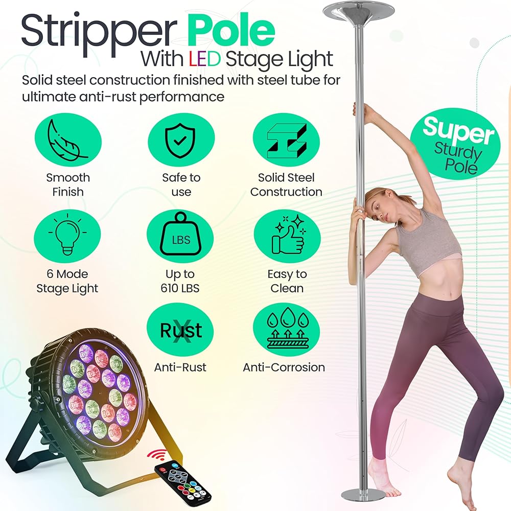 LED Lights - Bring fun and flair to your dance with our pole's lights. You can set the mood and make every dance more exciting. It's a delightful twist to any good time!