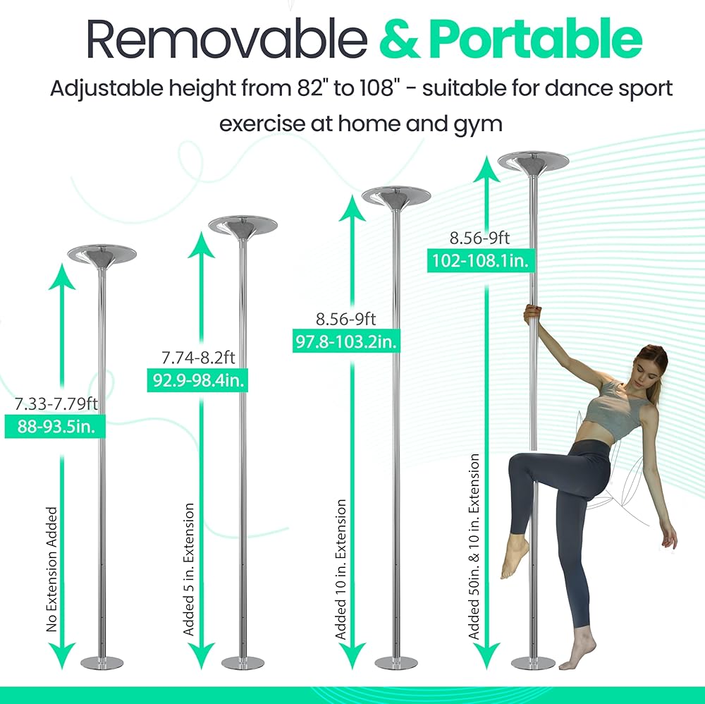 Portable & Removable - Going somewhere for a good time but not a long time? With our dance pole, you can easily move it and set it up wherever you want. Use it in your home, take it to a friend's house for dancing, or even to a bar/club! Have a good time wherever you go!