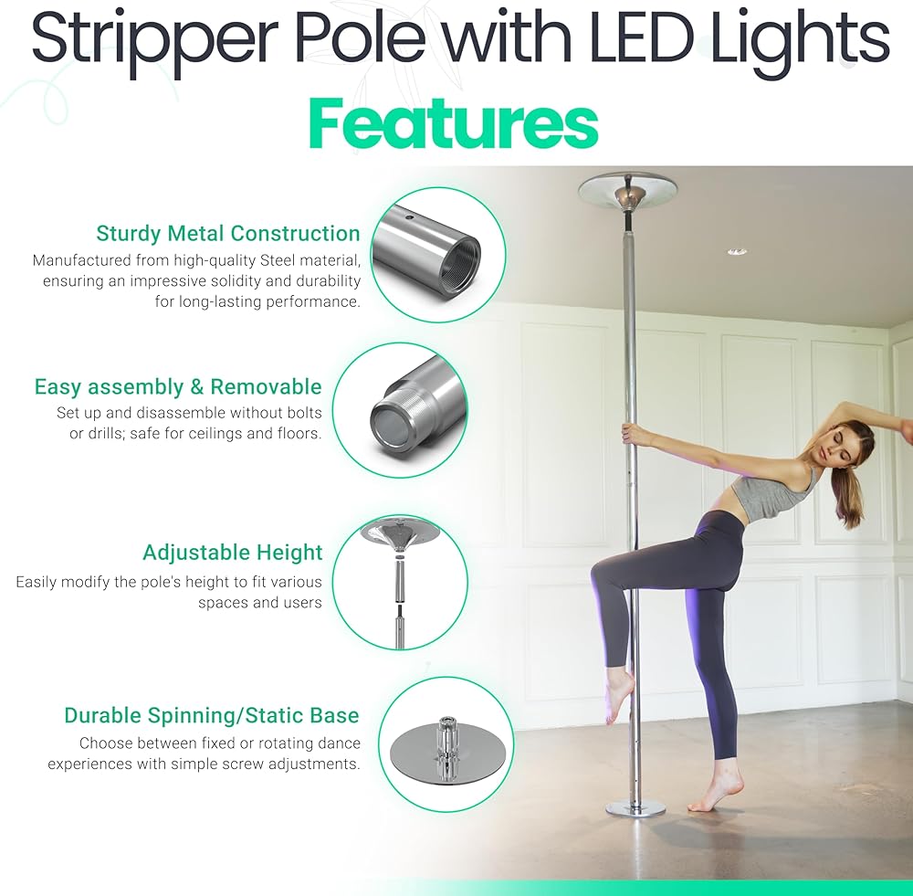 What You Get - Are you ready for a good time? Grab this dance pole that spins with bright lights and grippy gloves! Make it the perfect height for you. It's so easy to set up! With this, every dance is like a party and working out feels like a game. You won't want to miss out!