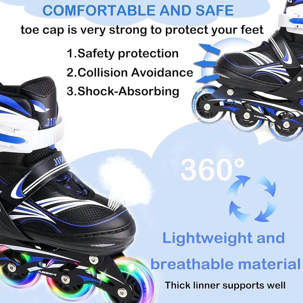 💗4. 【Perfect Birthday Present and Holiday Gifts】- Inline Skates are loved by children of all ages and fun for adults, too. Leave the video games and phone inside. Enjoy hours of outdoor fun, Let's go outside and play! (Warm Tip:Please check the wheels before using the inline skates ,in order to be more safe when your kids using them.)