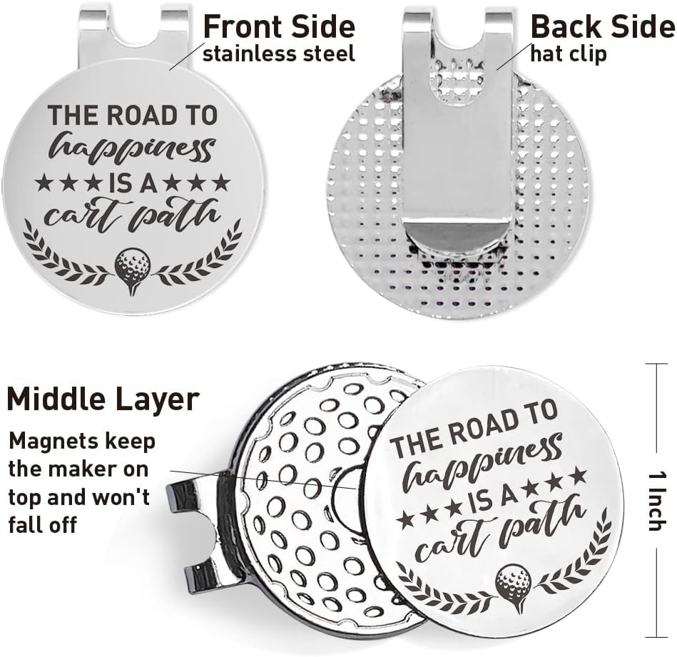 DESIGN: The ball marker comes with a magnetic cap clip, it's won't have problem with keeping the marker and moving it freely. The clip slides effortlessly onto the brim of a visor or golf hat, and the markers can be placed on top of it without falling out.