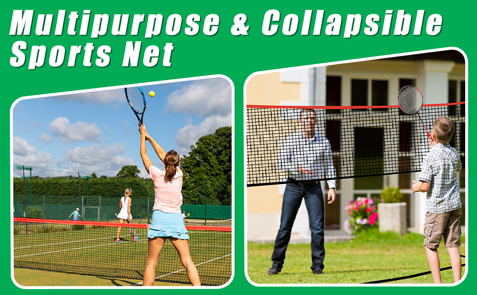 🎾ADJUSTABLE & MULTIPURPOSE -- This height adjustable tennis net can be adjusted between 35 and 63in, which makes it a multipurpose net. This collapsible tennis net for kids can also be used as pickleball net, badminton net for backyard, kids volleyball net, soccer net for kids. This multi purpose tennis net for driveway is the best choice for you.