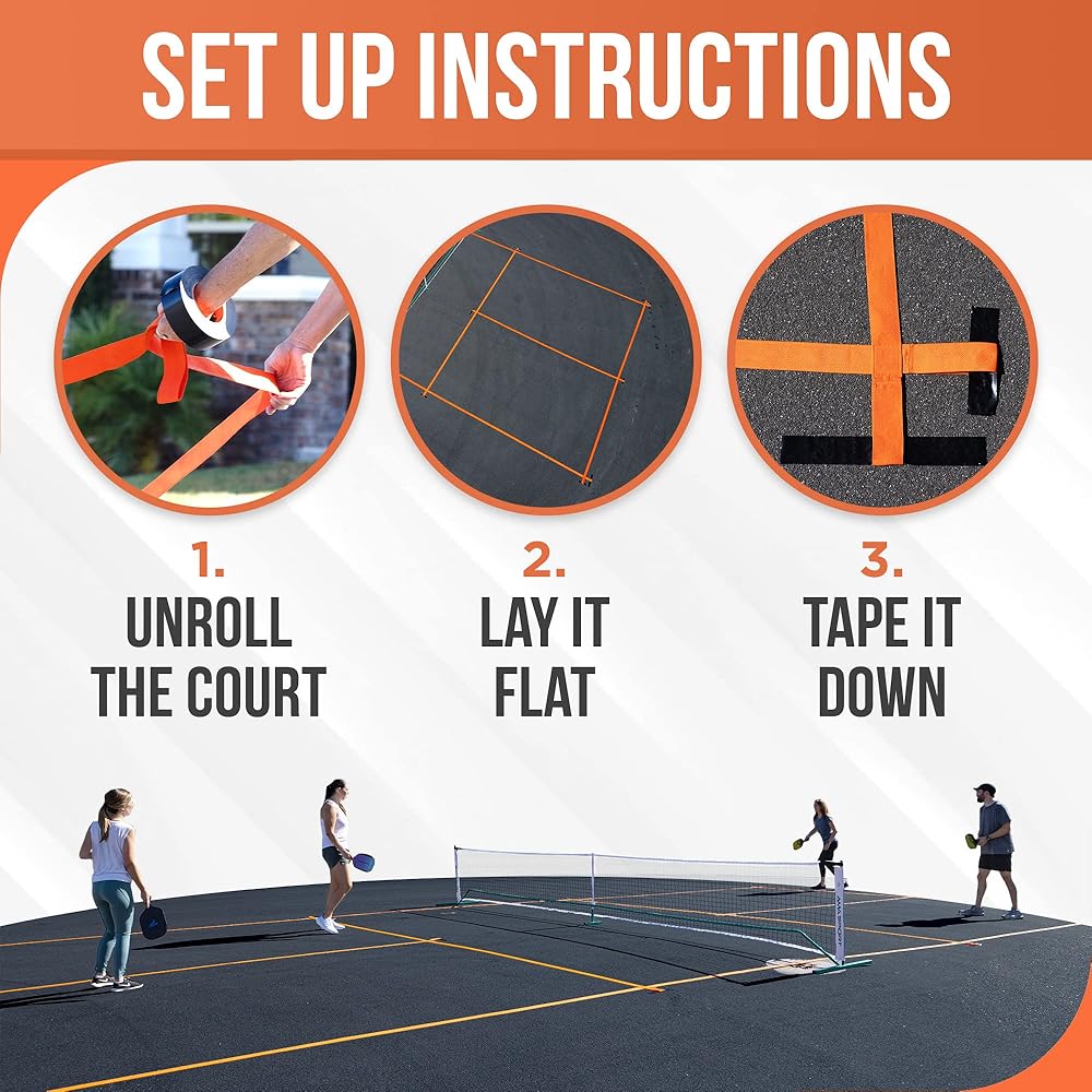 Temporary Pickleball Court Lines - The Original - Portable Pickleball Court Marking Kit, Lines for Court Outdoor or Indoor, Pickle Ball Court Dimensions, No Measuring Needed, Net Not Included