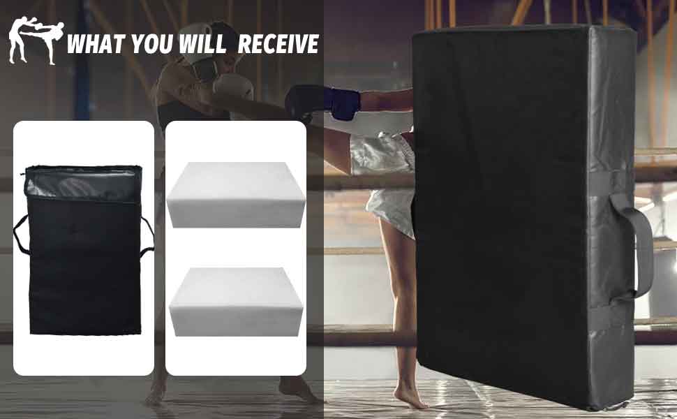 DURABLE and LIGHTWEIGHT: Our blocking pad with strong shock absorption. The inflatable bladder is made of thick PVC with strong resilience and excellent shock absorption function. And can withstand strong boxing and kicking.