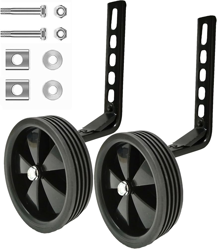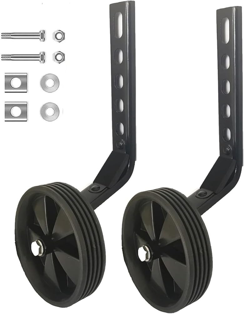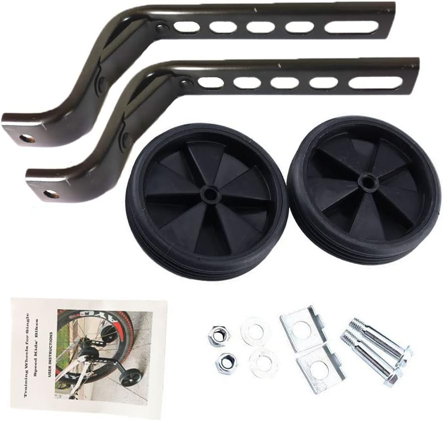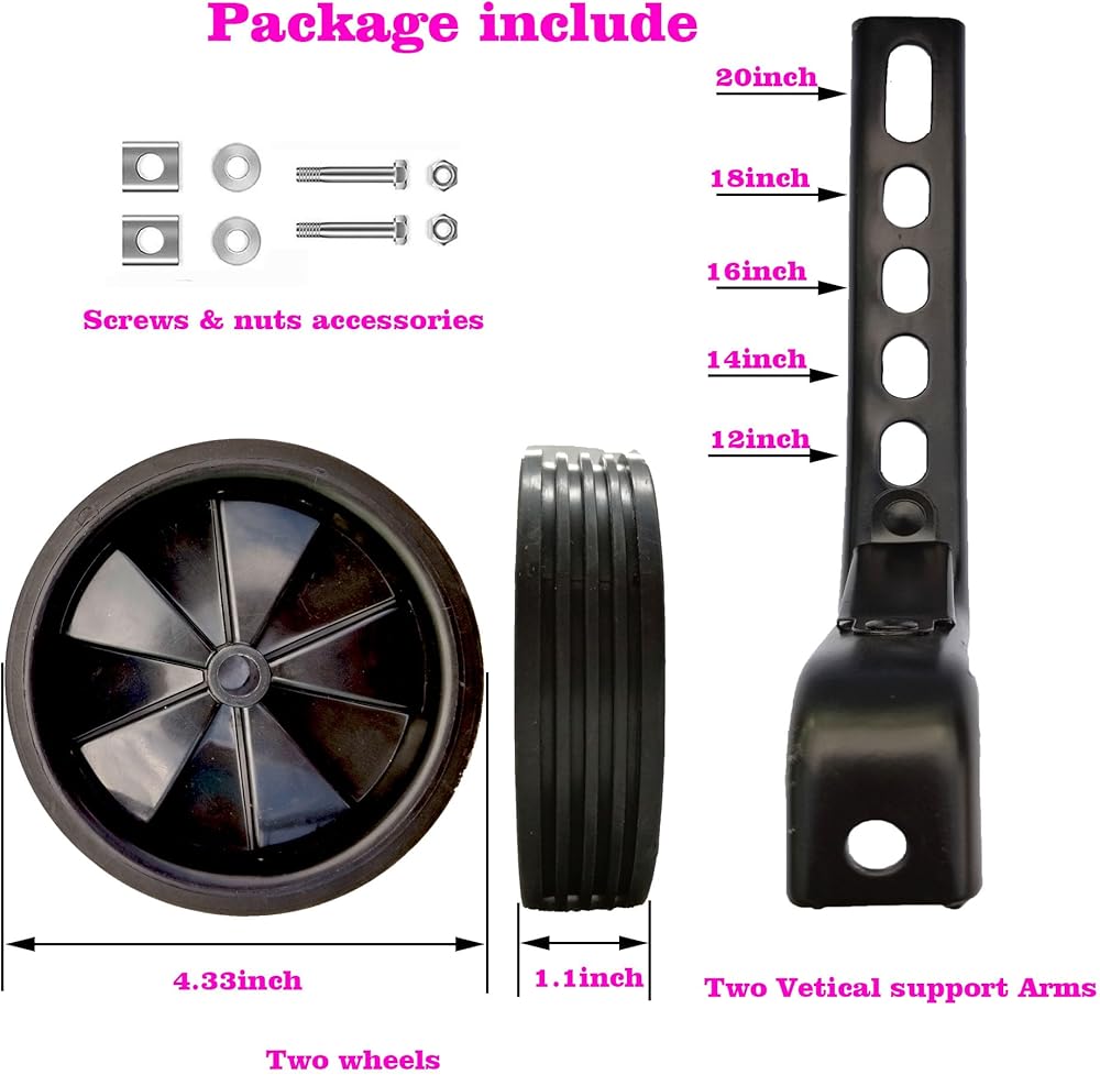 Adjustable bicycle training wheels: The training wheels with stabilizer is adjustable, which can be adjusted to fit various children's bikes with 12-20 inch wheels.