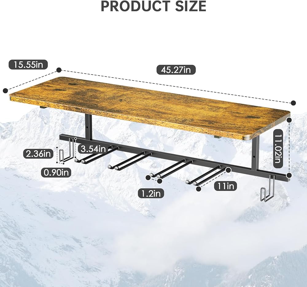 Snowboard Wall Mount,Ski Wall Mount Can Bear Weight of 400 Pounds,Ski Rack with Wooden Shelf,Ski Rack for Garage Wall Holds 12 Pairs,Snowboard Rack Size 45.27‘L’15.55‘W’inch.