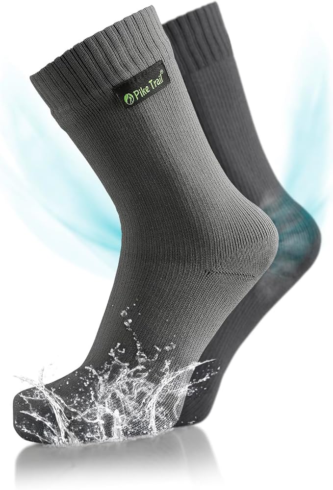 WATERPROOF; Unlike inferior hiking socks, these premium waterproof socks from Pike Trail are crafted to keep your feet dry in any conditions; These waterproof socks for women and men feature triple layer engineering that prevent your feet from becoming wet no matter where the adventure takes you