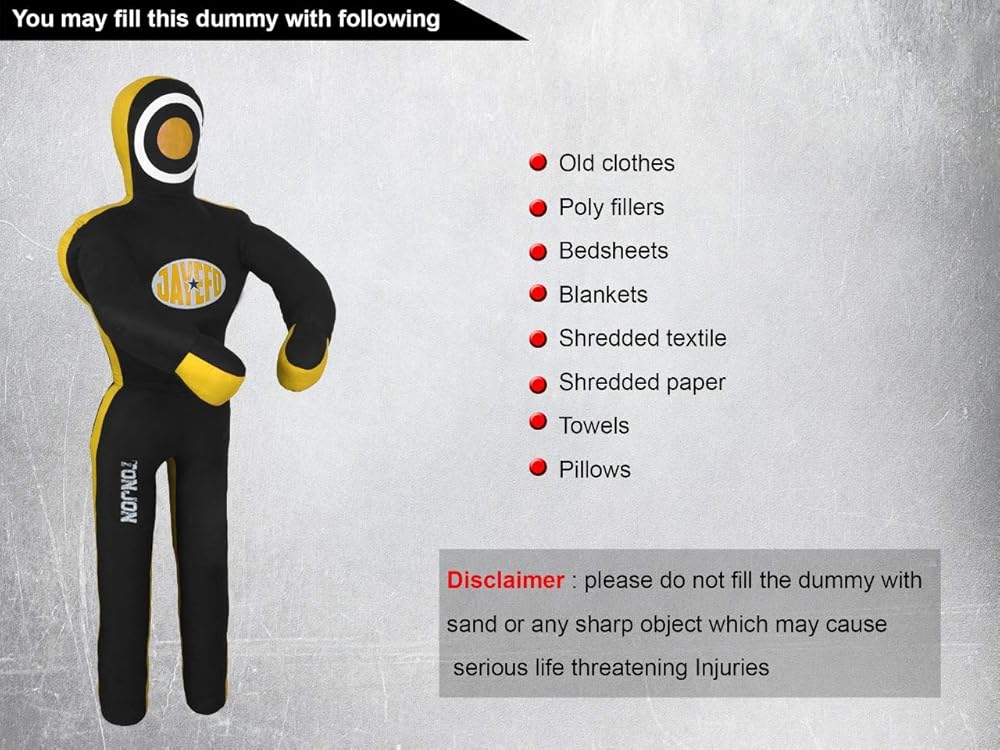 Jayefo introduced bjj/wrestling dummies and we know how to make them the best from strong material to handmade stitching on major points this dummy will last you a long time so don't worry building some emotions for your new buddy he isn't going nowhere.