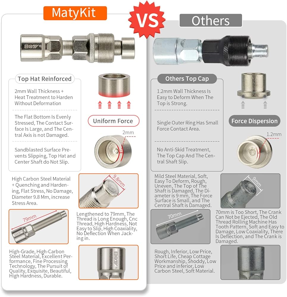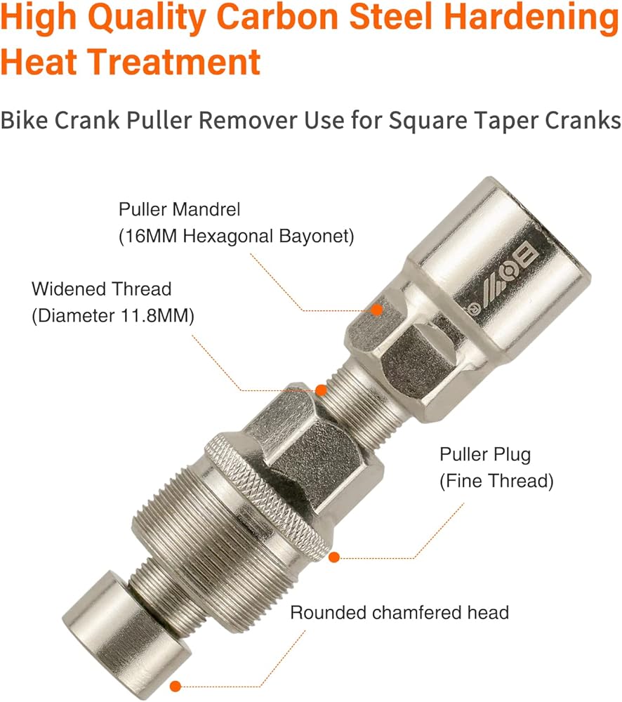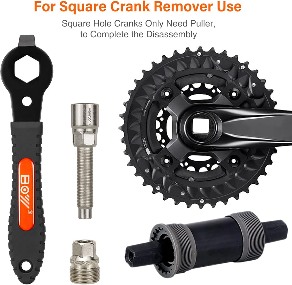 SAFE CRANKSET REMOVAL TOOL: Bike crank extractor/puller fit for any 20 teeth splined type bottom bracket and standard square tapered crank sets, Made from hard steel metal, To ensure your bicycle BB teeth safe without damaged.
