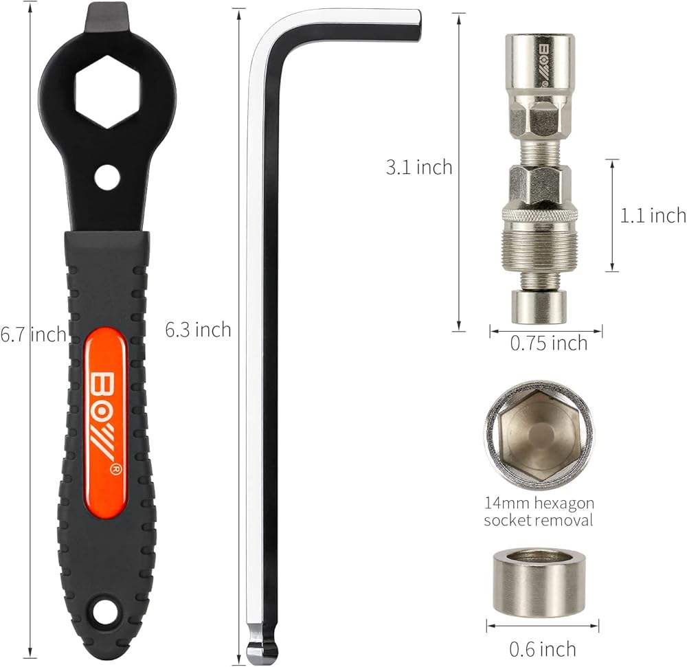 6 IN 1 CRANK REMOVAL TOOL: bike crank removal tool kit including bottom bracket remover, crank puller / extractor, 16mm spanner and auxiliary Wrench.