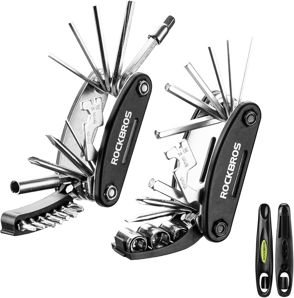 ROCKBROS 16 In 1 Multi-Function Bike Tool Kit - Portable Foldable Bike Multitool Cycling Tool Kit With Allen Wrench, Tire Levers