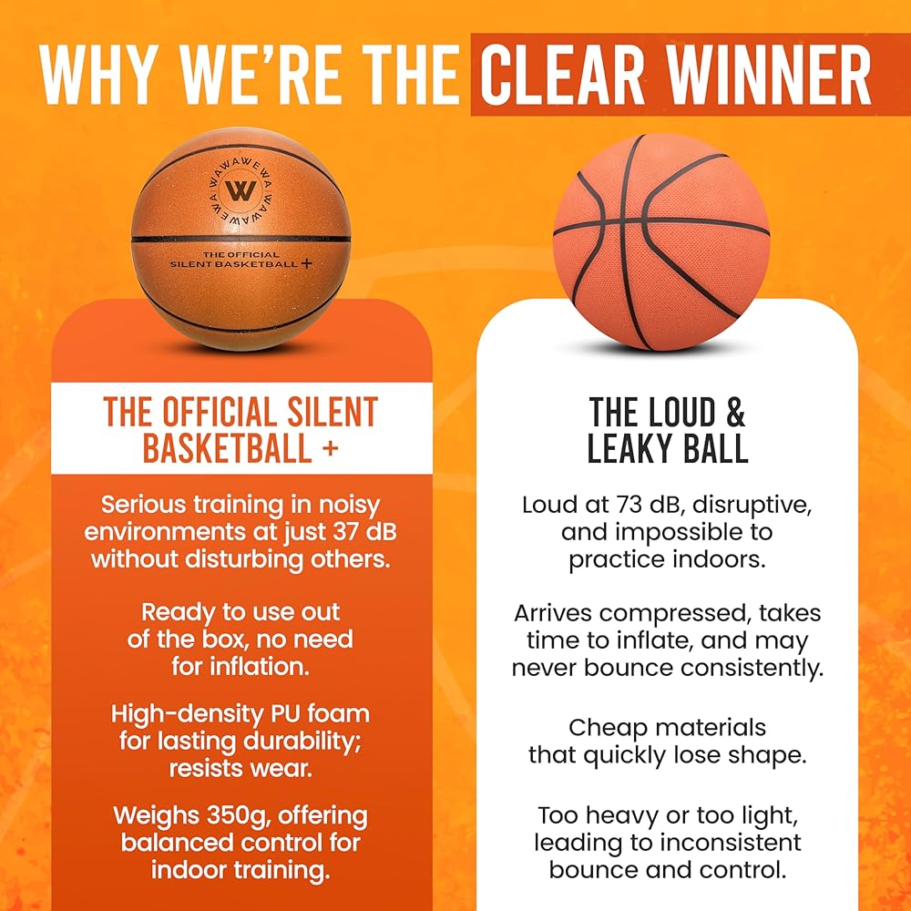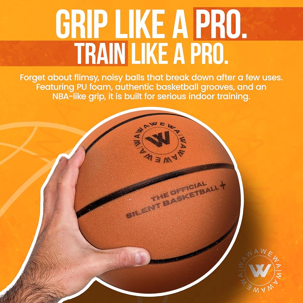 WAWAWEWA The Official Silent Basketball Size 7 (29.5") - Grooved Airless Indoor Basketball for Quiet Dribbling and Indoor Training - Real Feel PU Foam Ball
