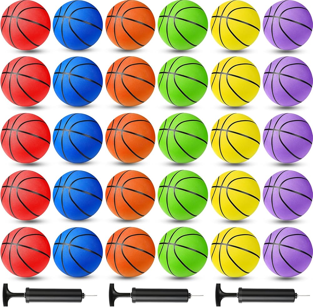 Basketballs Bulk: you will receive 20 basketballs in 6 bright colors; Green, yellow, purple, and red, each with a quantity of 3, and orange and blue, each with a quantity of 4, making your basketball games even more exciting and enjoyable, coming with 2 pieces of inflation pump