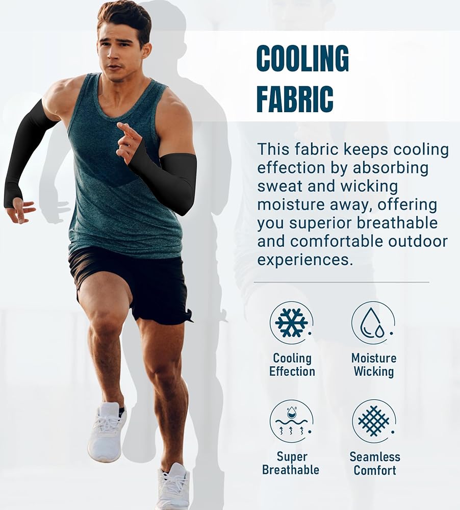 Superb Cooling Effection - We made our arm sleeves of sweat-wicking materials, absorbing sweat and wicking moisture away. With a slight breeze or even just moving around a lot they do become cooler than bare skin, supper cooling and comfortable to enjoy a round of golf or basketball.