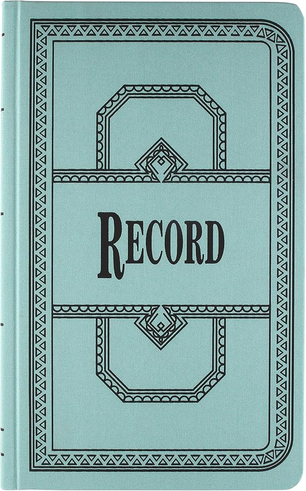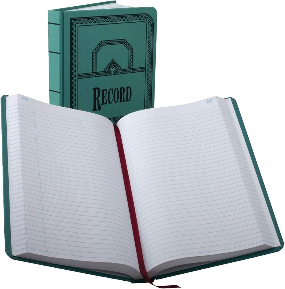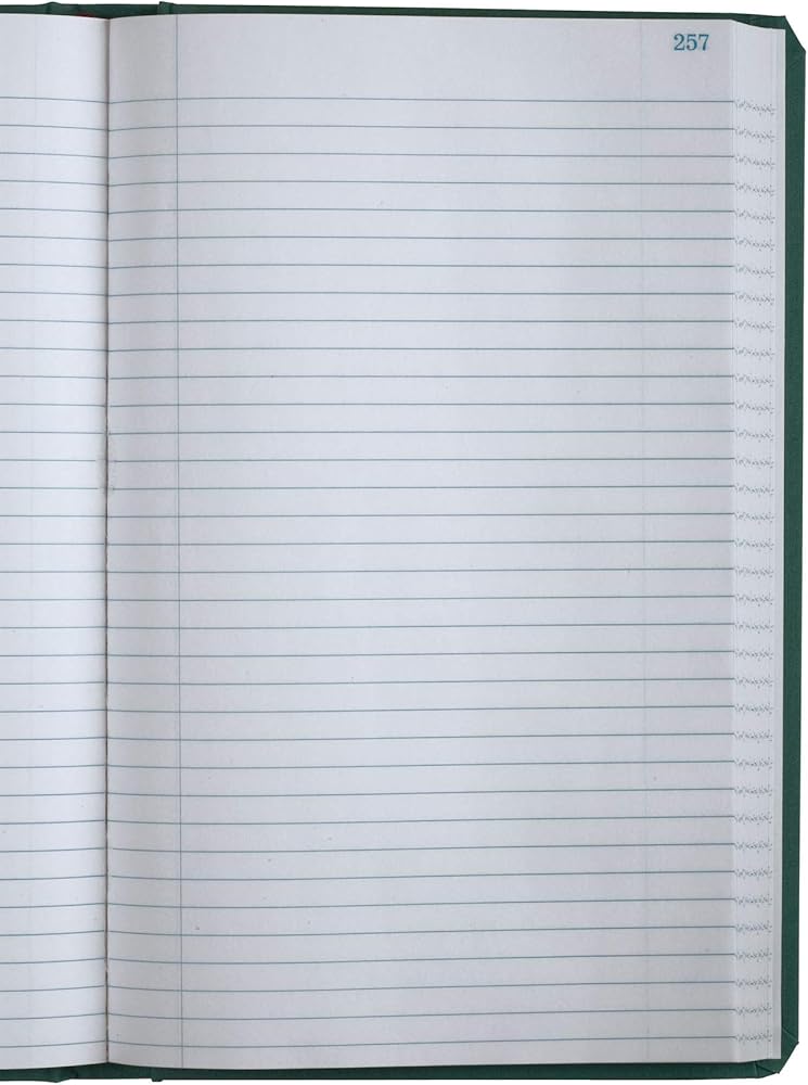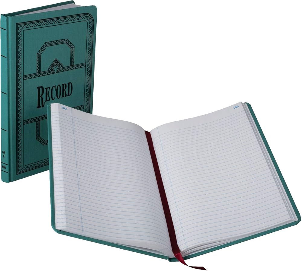 Account book offers 35 lines per page, no units, a table of contents page, marker ribbon, and blue canvas cover. Each page is made of premium, white paper. Paper is acid-free and section thread sewn. Red and blue record rulings are waterproof and permanent.