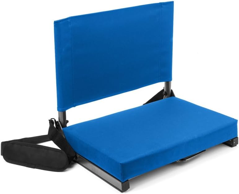 Easy Transport and Compact Storage: Folds down flat for convenient storage and portability. Effortlessly carry this portable stadium seat by utilizing the shoulder strap and built-in cushioned handle.