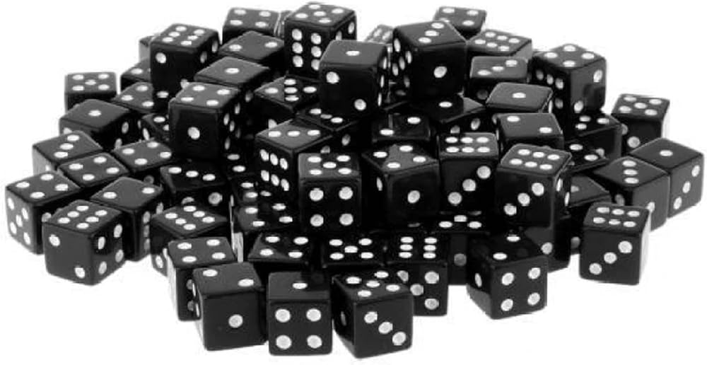 100 Black Opaque Dice.