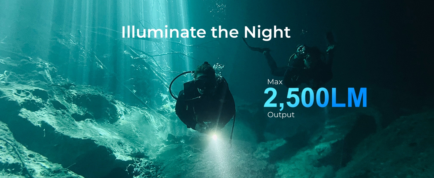 【SUPER BRIGHT】Maxmium 2500 lumens output and 577ft/176m beam distance.