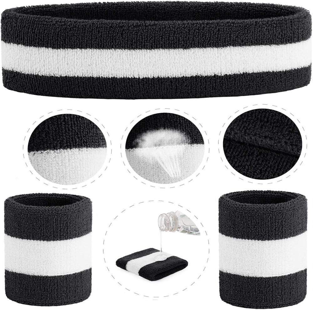 💖 Sweat Absorption and Protection : Elastic comfortable sweatbands made from high level sweat absorbing materials, which that absorbs and protect your skin. This headbands wristbands breathes well, to protect your eyes from sweat. It is a non-slip, odor-resistant cotton that keeps you looking stylish effortlessly, you don't have to worry about your sweat when you are doing your sport because the sweatband set has got you covered. (Unisex)