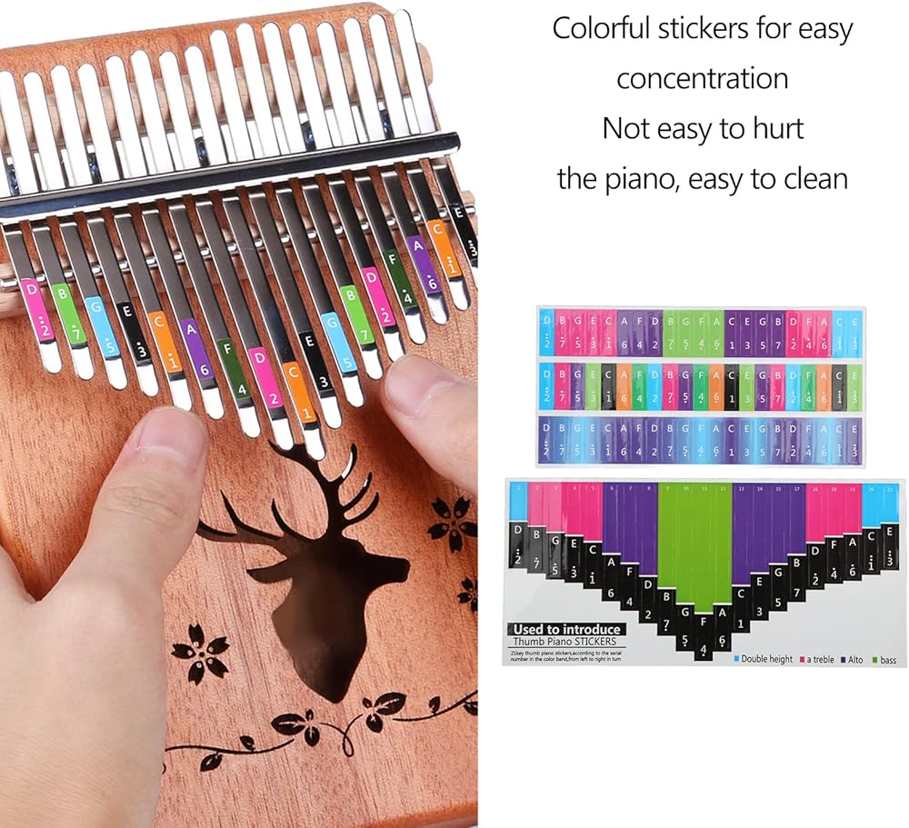 4. GOOD DECORATION: Colorful kalimba stickers make the player concentrate quickly, and also have a good decorative effect.