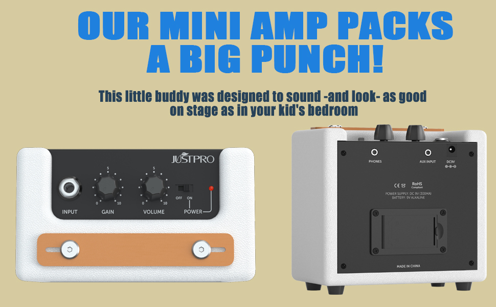 Perfect for Electric Guitar Beginner/Kids: Dedicated volume and gain controls, MP3/Line input & headphone output, perfect for room desktop practice
