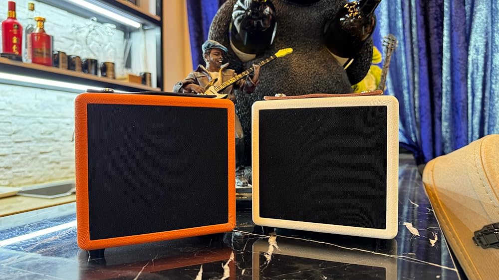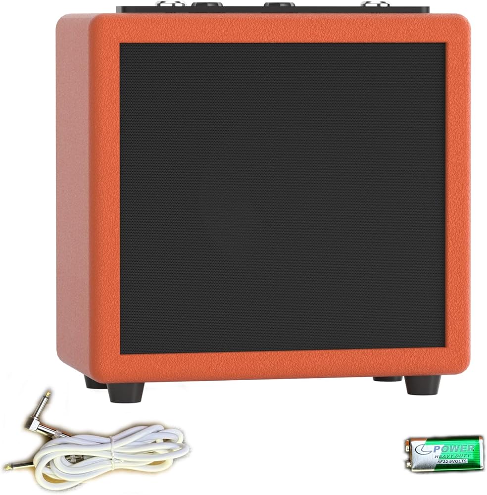 Guitar Amp, 5W Mini Guitar Amplifier Portable with Volume, Gain and Overdrive Control for Electric Guitar Bass Desktop Practice Kids Beginner Starter (Orange)