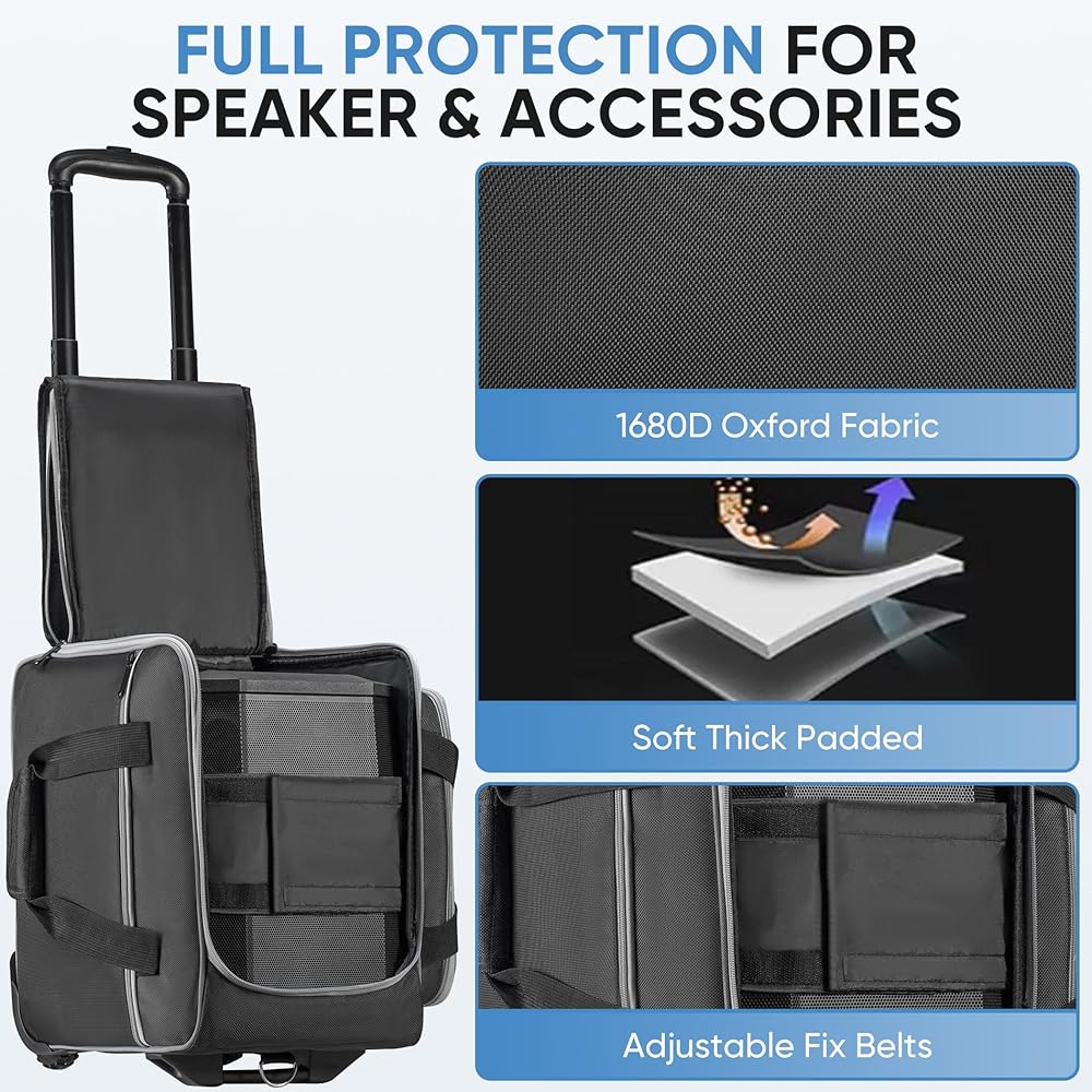【Full Protection for Speaker】Thick pads are equipped in the whole speaker roller bag compatible with Bose S1 Pro, which protect the speaker from bumps, scratches. 2 interior adjustable fix belts to tight the speaker, avoid damage by shaking during transport.